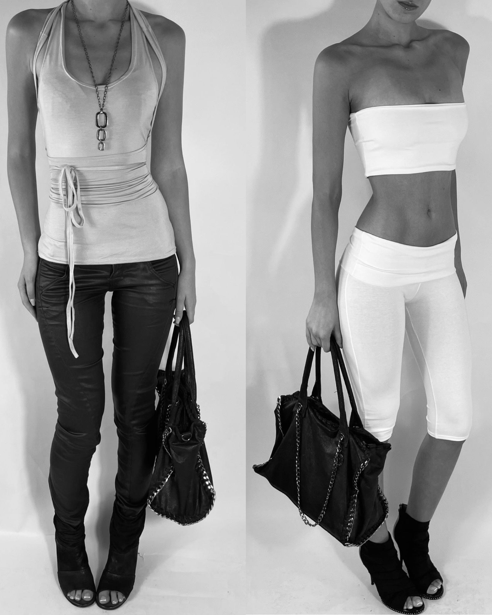 FOLDOVER CAPRI PANTS AND BANDEAU SET IN WHITE